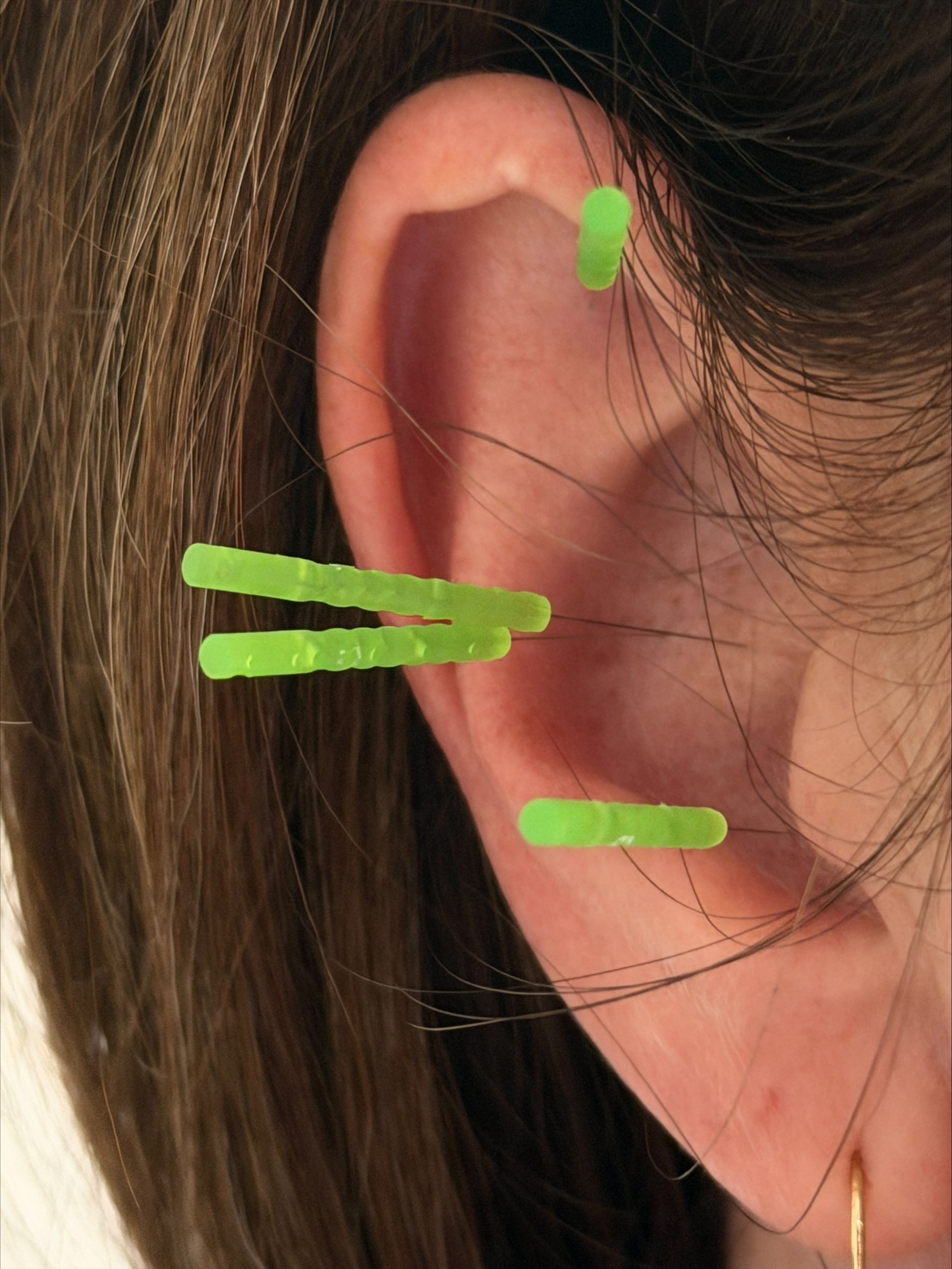 Ear acupuncture or auricular acupuncture can support direct stimulation of the vagus nerve. Studies show that auricular acupuncture can change brain activity in vagal-related regions, supporting calm, improved digestion, and reduced inflammation (Wang et. al, 2012).